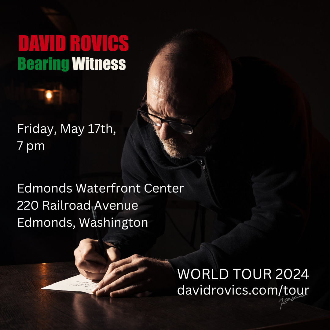 Pacific Northwest: I'm looking forward to doing a concert on May 17th at the Edmonds Waterfront Center in Edmonds, just north of Seattle. After that, Vancouver, BC, Olympia, and PDX! At davidrovics.com/tour advance tickets are available for most gigs, but folks are welcome to just show up.